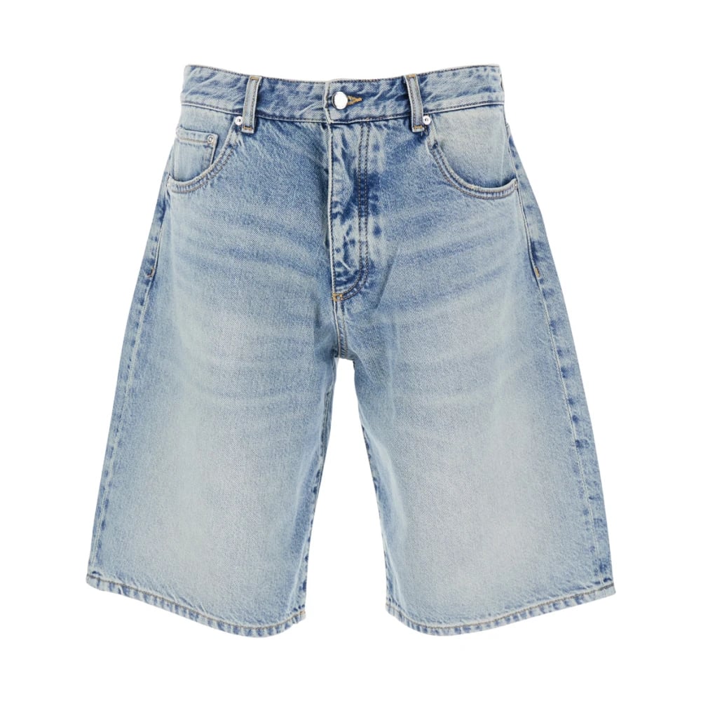 Icon Denim, Shorts , Herr, W33, Denim, Denim Bermuda Shorts med Medium Tvätt och Slitna Detaljer