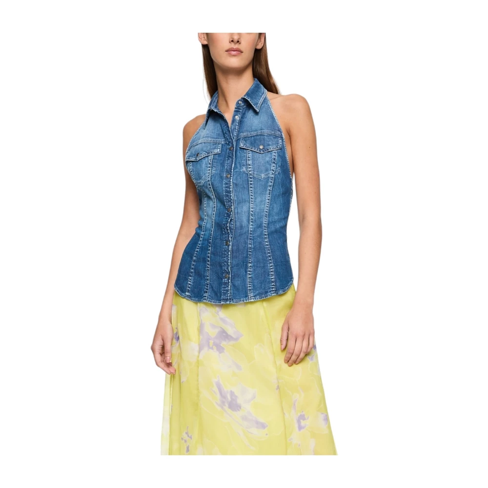 Dondup, Toppar , Dam, M, Denim, Stilfull ärmlös topp