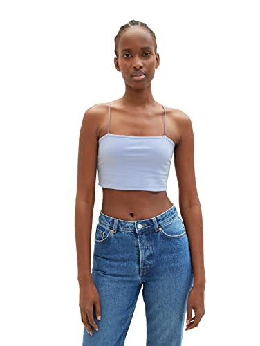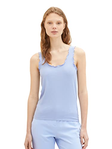 TOM TAILOR Denim dam basic topp med volanger, 12819 – Parisienneblå, XS