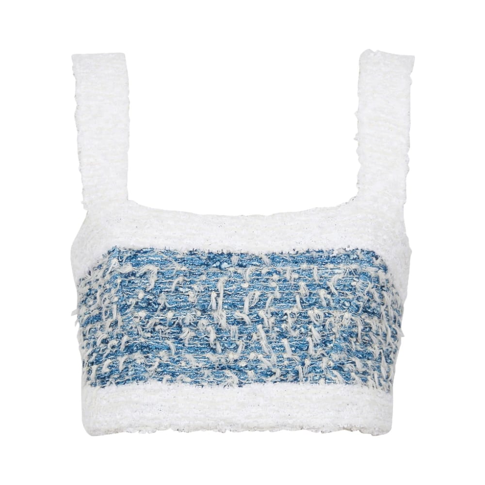 Balmain, Toppar , Dam, M, Denim, Denim tweed axelbands topp