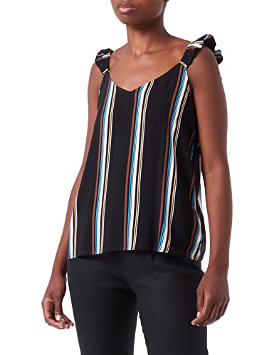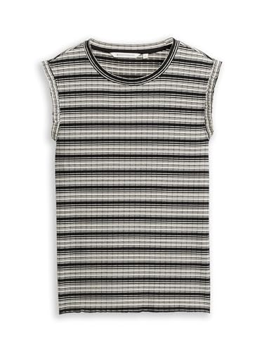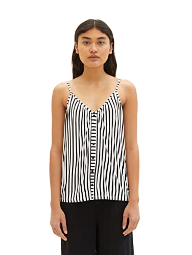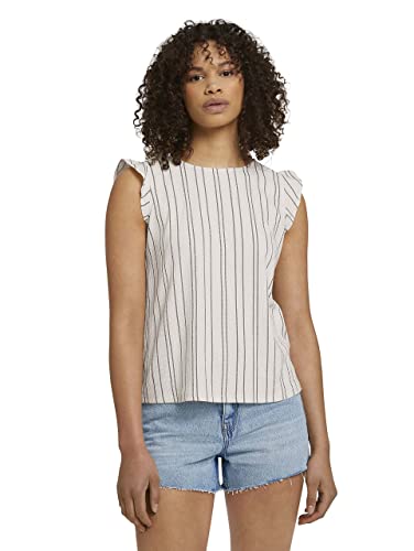 TOM TAILOR Denim Damer Topp med volanger 1031749, 29873 - Black Creme Stripe, M
