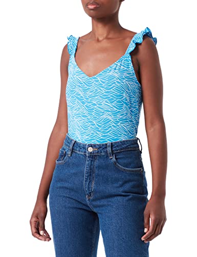 TOM TAILOR Denim Damer Topp med volanger 1031749, 29870 - Blue Wave Print, M