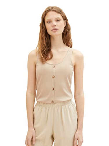 TOM TAILOR Denim Damer Ribbad topp med knappslå 1025696, 22515 - Soft Creme Beige, L
