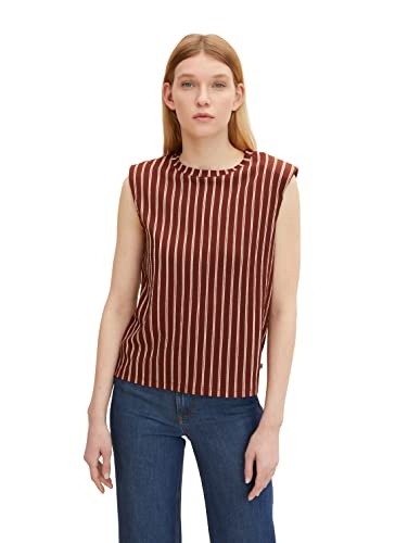 TOM TAILOR Denim Damer Topp med axeldynor 1031906, 29650 - Brown Beige Stripe, XS