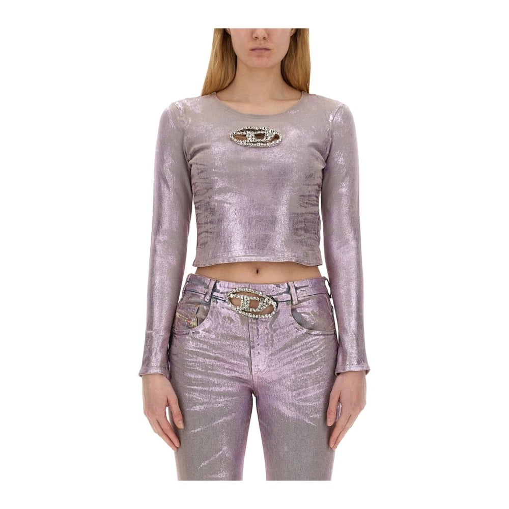 Diesel, Toppar , Dam, M, Denim, Långärmad topp med kristallplatta