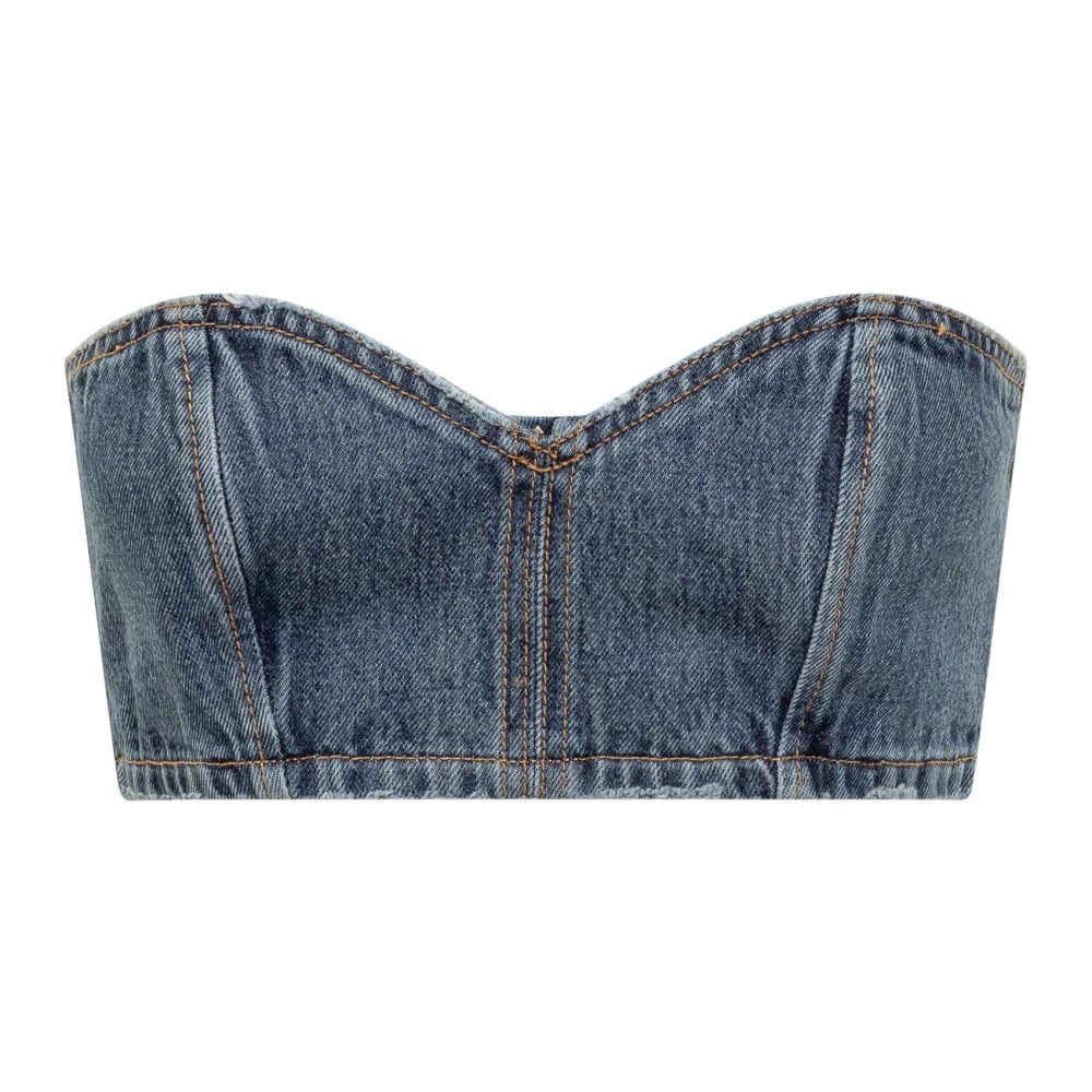 Amiri, Toppar , Dam, S, Denim, Blå Denim Korsett Topp Ärmlös