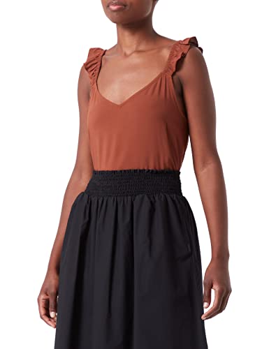 TOM TAILOR Denim Damer Topp med volanger 1031749, 29566 - Nut Brown, M