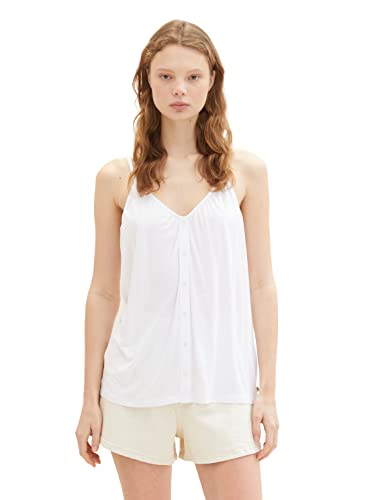 TOM TAILOR Denim dam basic topp med dekorativa knappar, 20000 – vit, M