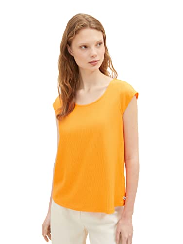 TOM TAILOR Denim Damer Topp med ribbstruktur 1032446, 29565 - Golden Peach, XS