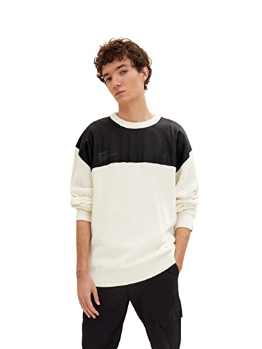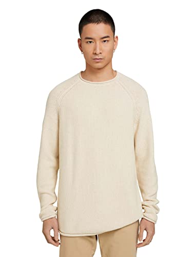TOM TAILOR Denim Herr Stickad tröja 1033534, 30556 - OffWhite white Knit Mouline, S