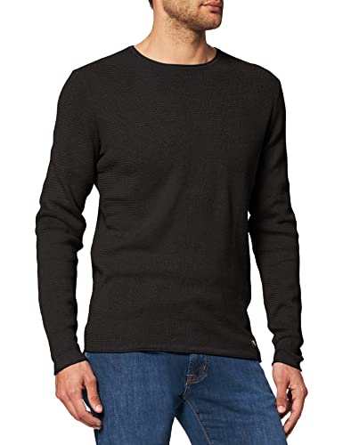 TOM TAILOR Denim Herr Stickad tröja med struktur 1016090, 29999 - Black, S