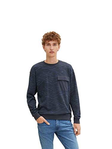 TOM TAILOR Denim Herr Tröja med mönster 1032780, 30329 - Dark Grey Blue Marble Print, XS