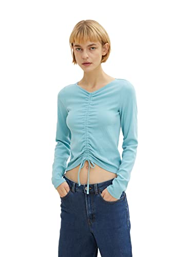 TOM TAILOR Denim Damer Långärmad tröja med snörning 1034833, 30271 - Bright Reef Blue, XXL