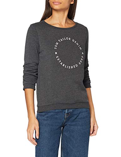 TOM TAILOR Denim Damer Tröja med logotyp tryck 1034657, 10522 - Shale Grey Melange, XS