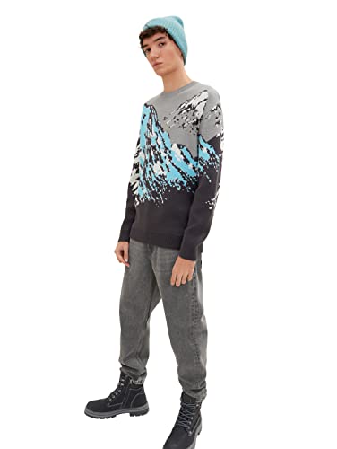 TOM TAILOR Denim Herr Stickad tröja med mönster 1033769, 30907 - Grey Blue Jknit Jacqaurd, M