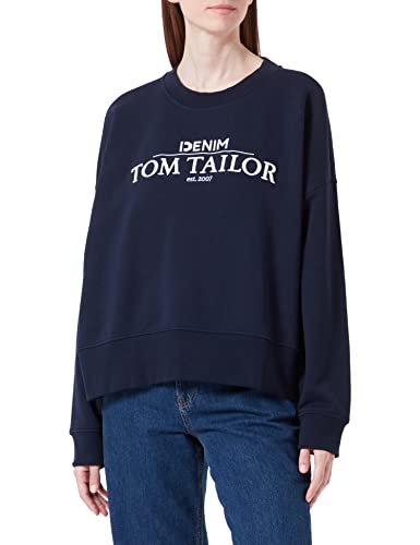 TOM TAILOR Denim Damer Tröja med logotyp 1032938, 10668 - Sky Captain Blue, M