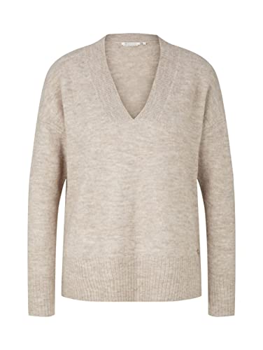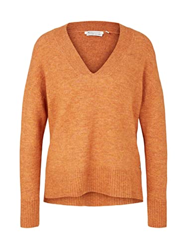 TOM TAILOR Denim Damer Grundläggande tröja med V-ringning 1033309, 30345 - Rusty Amber Melange, S