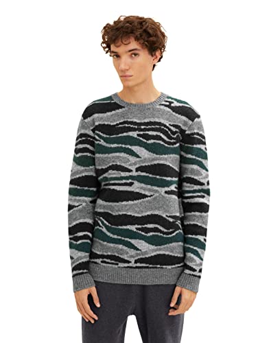 TOM TAILOR Denim Herr Stickad tröja med mönster 1033765, 30867 - Green Black Marble Jacquard, S