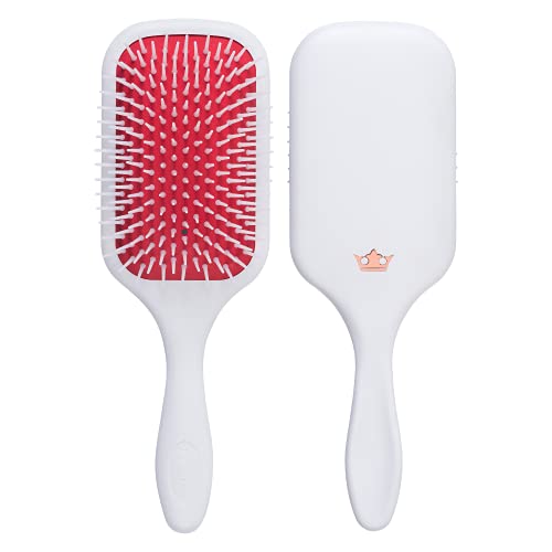 Denman Power Paddle Hair Brush for Fast and Comfortable Detangling, Blow Drying and Styling - Combination of D3 Styling Pins & Paddle Brush - For Women and Men (White, Red Pad), P038