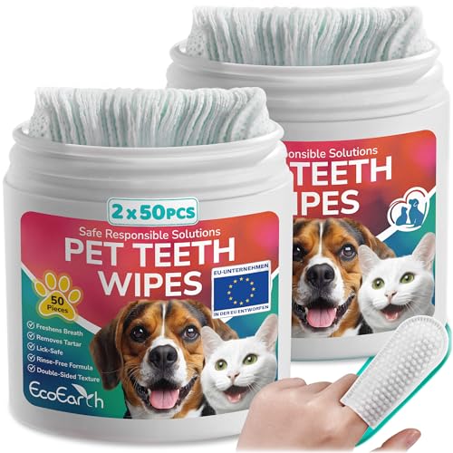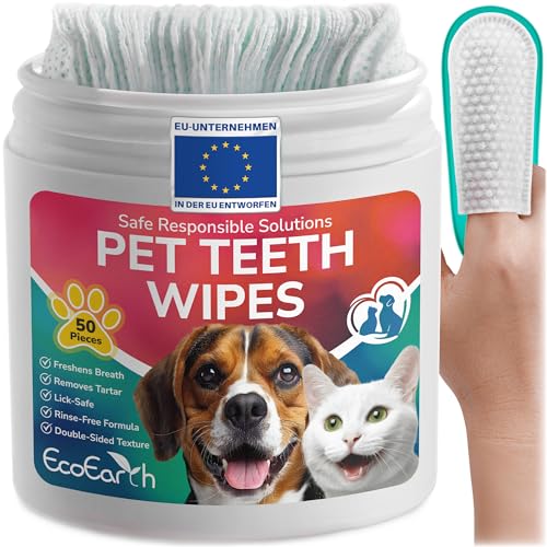 EcoEarth - Teeth Cleaning Wipes for Dogs & Cats - Pet Dental Care Finger Pads for Fresh Breath & Oral Hygiene - Remove Plaque & Tartar - 100 pcs