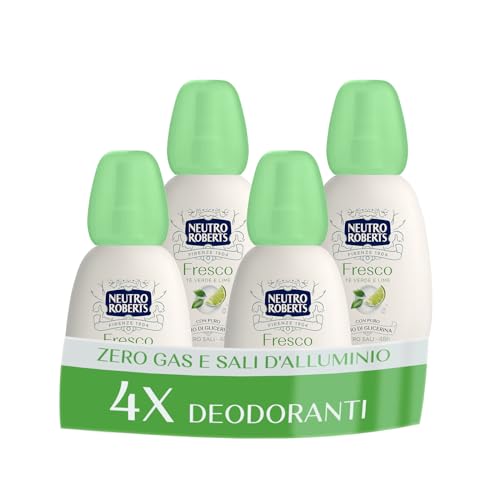Neutro Roberts, Färsk grön Vapo Deodorant, grönt te och lime, noll aluminiumsalter, med ren glycerinolja, deodorant för män och kvinnor, 100% återvunnen plast, noll gas, 48h - 4 stycken 75 ml