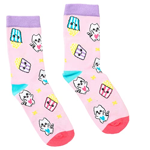 Depesche 12445 TOPModel Cutie Star – strumpor i ljusa färger med söta katter och popcorn påsar, storlek 31–35