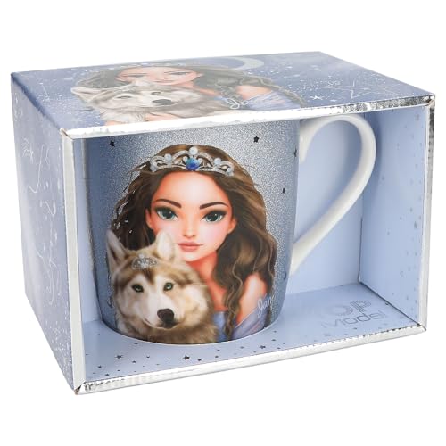Depesche 13066 TOPModel Wolf – kopp i vitt, med modellmotiv och blått skimrande tryck, dryckesmugg av porslin med handtag, kapacitet ca. 300 ml
