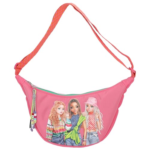 Depesche 12916 TOPModel Joy – liten halvmåne axelväska i rosa och orange, med modellmotiv, färgglada detaljer, väska med justerbar axelrem