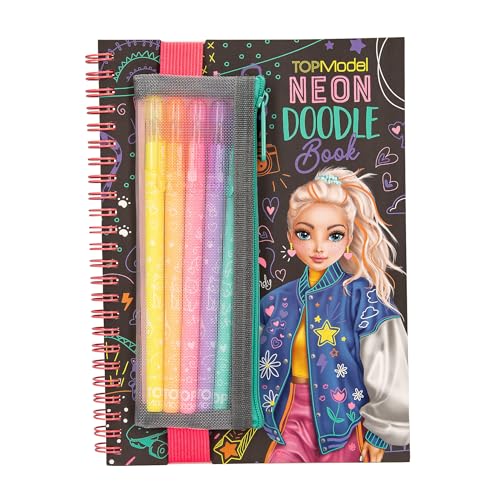 Depesche 13217 TOPModel Neon Doodle färgläggningsset med 70 sidor i svart och vitt, inklusive 5 neongelpennor och klistermärken