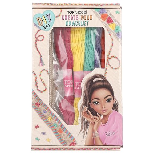Depesche 12680 TOPModel Create Your Bracelet DIY armband, knåp av broderiarmband, smyckeset med garn, nål UVM, flerfärgad