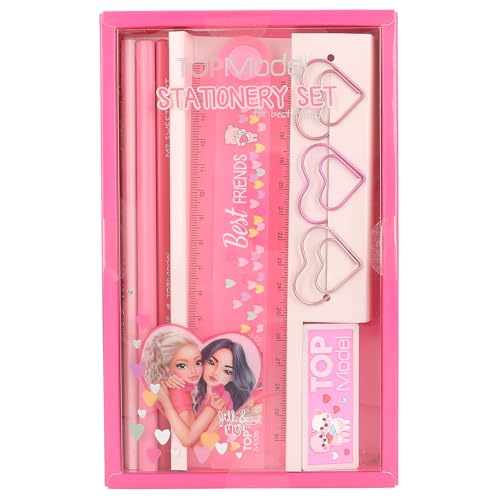 Depesche 12857 TOPModel – skrivmaterialset i rosa, med modellmotiv och hjärtan, inklusive pennor, suddgummi, linjaler och mycket mer.