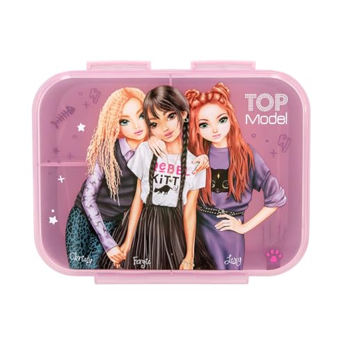 Depesche 13257 TOPModel Rebel Kitty – matlåda i lila, med modellmotiv och lejonmönster, matlåda med 3 fack och transparent lock