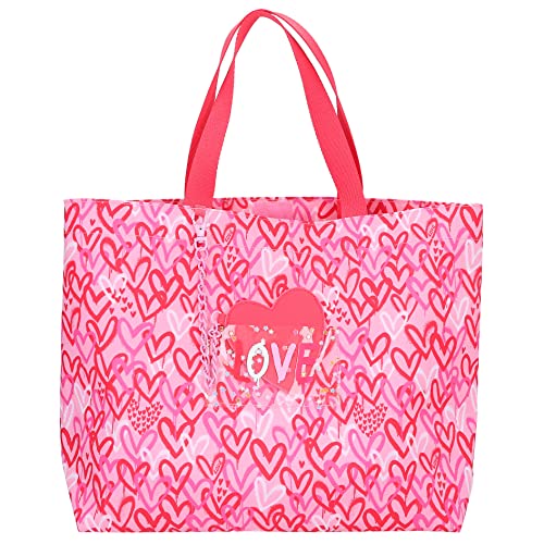 Depesche 12234 TOPModel One Love – tygväska i rosa och rött med hjärtan, shoppingväska med innerficka, flerfärgad, ca. 29 x 41 x 13 cm