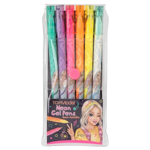 Depesche 12229 TOPModel – neongelpennor, set med 6 pennor i turkos, lila, rosa, gul, orange och vit, för att skriva även på mörkt papper