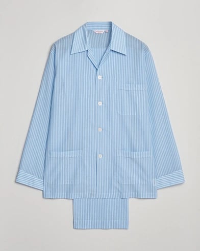 Derek Rose Striped Cotton Pyjama Set Light Blue
