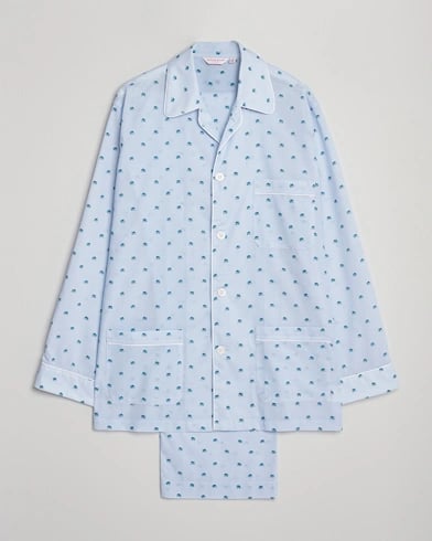 Derek Rose Printed Piped Cotton Pyjama Set Light Blue