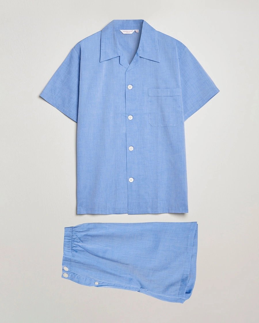 Derek Rose Shortie Cotton Pyjama Set Blue