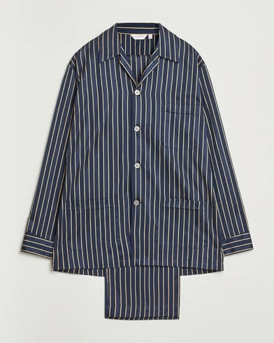 Derek Rose Striped Cotton Pyjama Set Navy