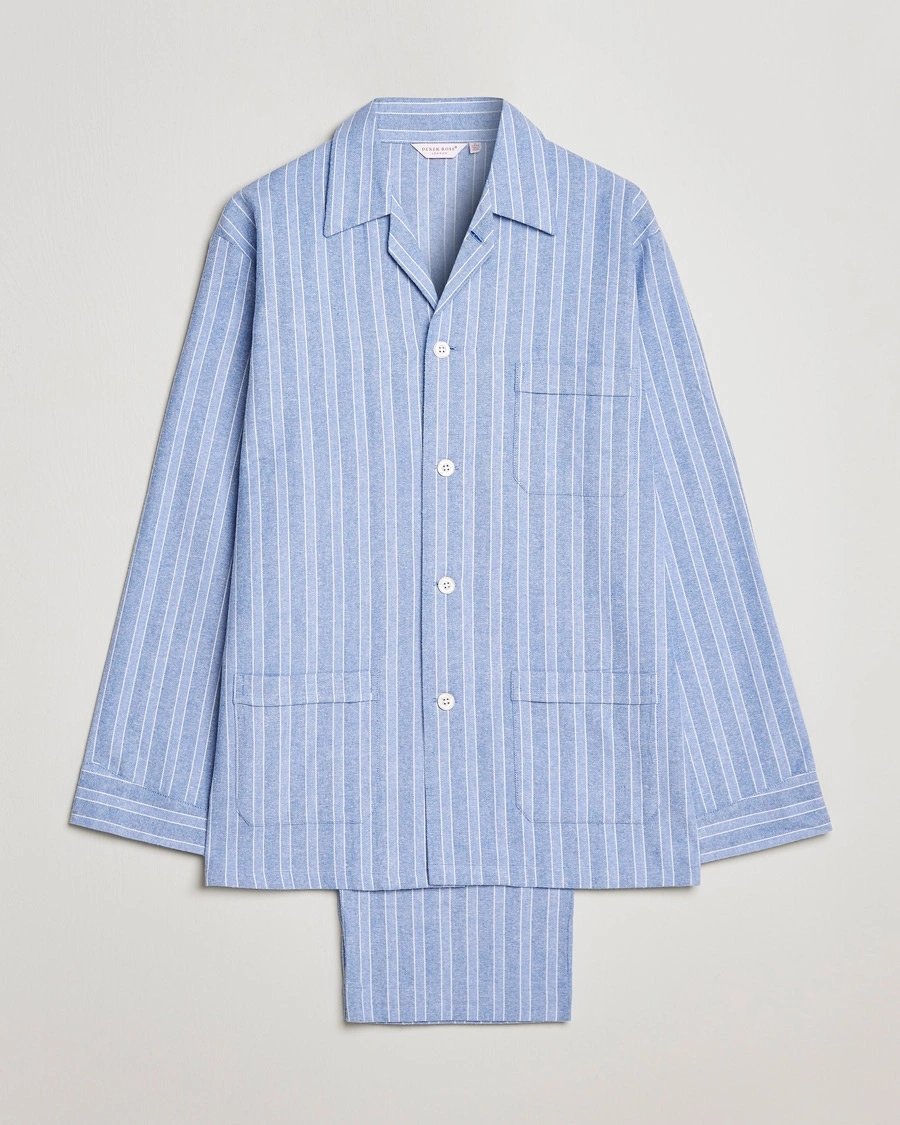 Derek Rose Brushed Cotton Flannel Striped Pyjama Set Blue