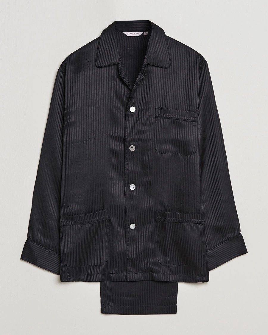 Derek Rose Striped Silk Pyjama Set Black