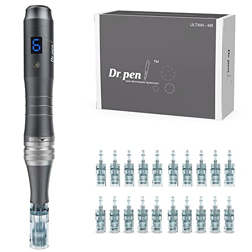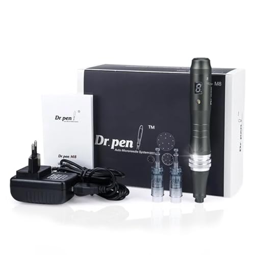 Dr.pen Ultima M8 Professional Dermapen, stimulerar kollagen och förbättrar rynkor och ärr, Dermapen med 8 patroner (11/16/24/36/42/RNANO/SNANO/5DNANO) för ansikte och skäggtillväxt