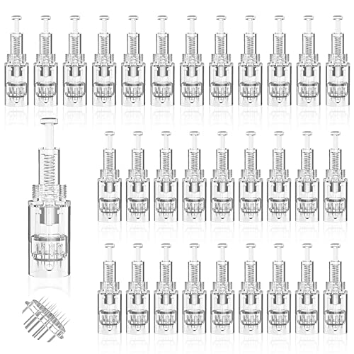 30 stycken mikroneedlingnålar, ersättningsnålar, dermapenna, 12 stift mikro-nano-nålar patroner, reservdelar mikronål, nålpatroner dermapen mikroneedlingsenhet ersättningsnålar för hudåterhämtning