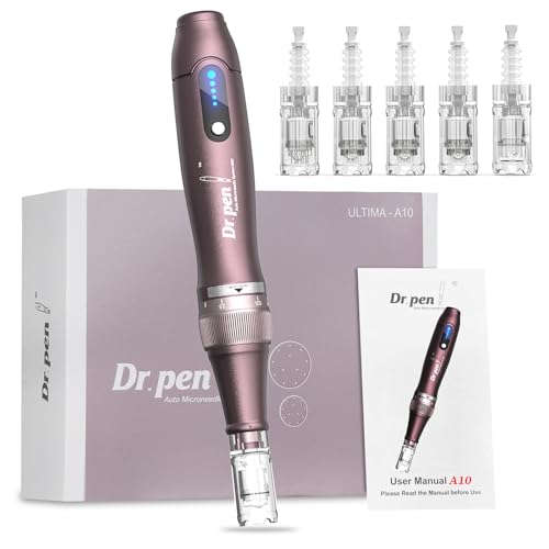 Dr.pen Ultima A10 Professional Dermapen, stimulerar kollagen för att bekämpa rynkor, trådlös dermapen med 5 patroner (12/24/36/42 stift, nano-R), för ansikte och hårväxt