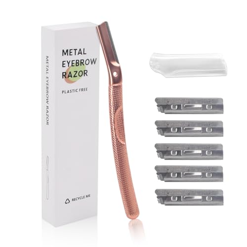 Dermaplaning ögonbryn ansiktsrakhyvel för kvinnor, metall ögonbryn skärningsverktyg, skärande och formning, ögonbrynsblad i rostfritt stål med 6 blad (roséguld)