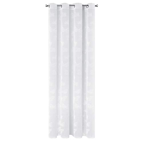 Eurofirany DESIGN91 gardin slät transparent 8 öljetter fluoriserande fjärilar gardiner moderna enkla sovrum barnrum vardagsrum, 140 x 250 cm, vit