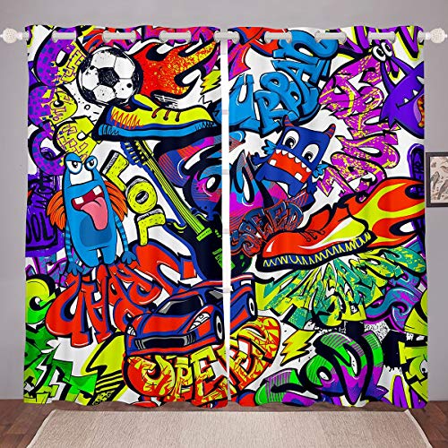 Graffiti stil fönstergardiner tonåringar ljus hippie graffiti gardiner pojkar hiphop design fönsterbehandling för barn sovrum dekor gatukultur tema fönster gardin B 46 x L 72
