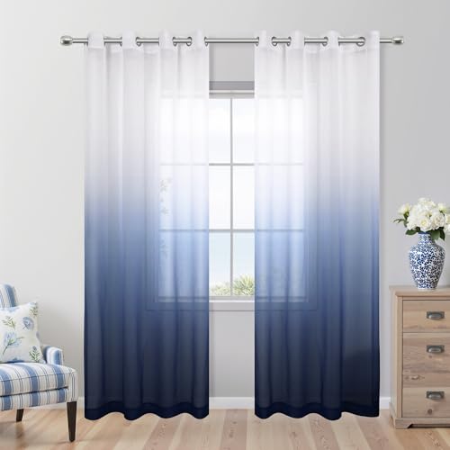 Marinblå gardiner 213 cm för vardagsrum uppsättning av 2 paneler genomföringsfönster halvren nautisk design falskt linne ombre marinblå gardiner för pojkar sovrum barnkammare män kontor dekor djup