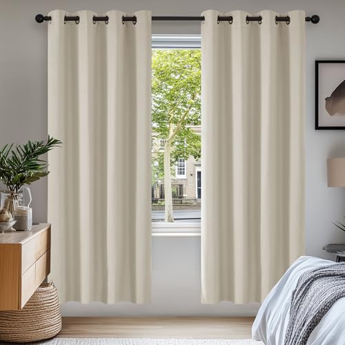 Deconovo Mörkläggningsgardiner, värmeisolerade mörkläggningsgardiner, 140 x 175 cm (bredd x höjd), gardiner för vardagsrum och sovrum, modern design med öljetter, beige