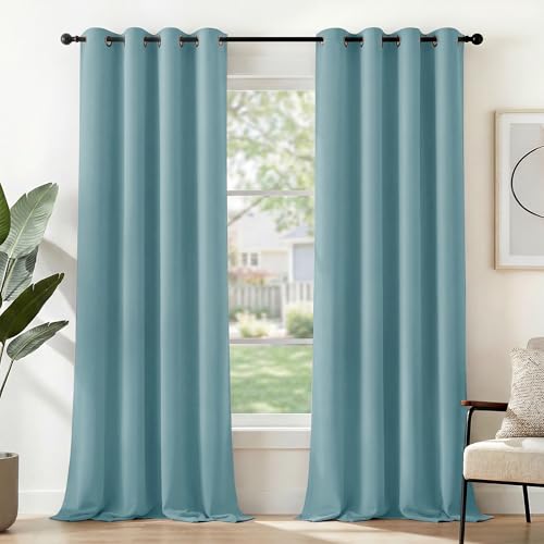 Deconovo Kylbeständiga värmeisolerade mörkläggningsgardiner, gardiner för vardagsrum och sovrum, modern design med öljetter, 140 x 240 cm (bredd x höjd), turkos, 1 st