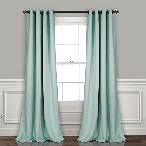 Frodig dekor isolerad genomföring mörkläggningsgardinpaneler, par, 132 cm B x 213 cm L, blå – klassisk modern design – elegant fönsterdekor – långa gardiner för vardagsrum, sovrum eller matsal